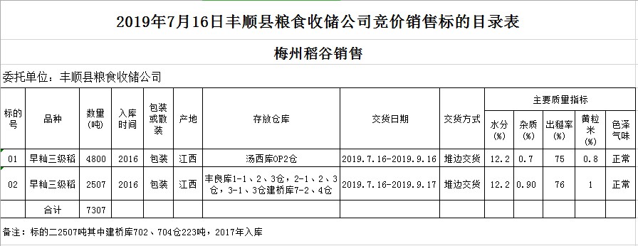 文件下載:2019年7月16日豐順縣糧食收儲公司稻谷銷售