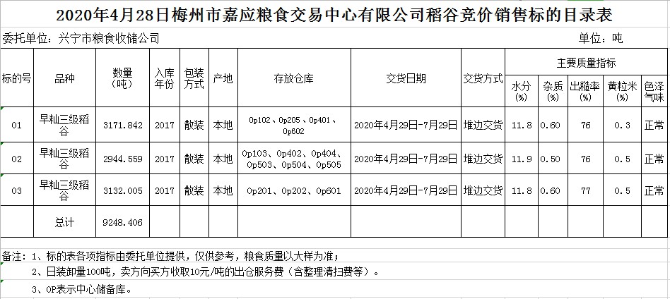 受客戶委托,梅州市嘉應(yīng)糧食交易中心有限公司定于2020年4月28日(星期二)舉辦糧食競價交易會,興寧市糧食收儲公司擬銷售2017年早秈稻9248.406噸。