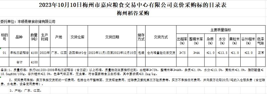 2023年10月10日豐順縣糧食收儲(chǔ)有限公司稻谷采購