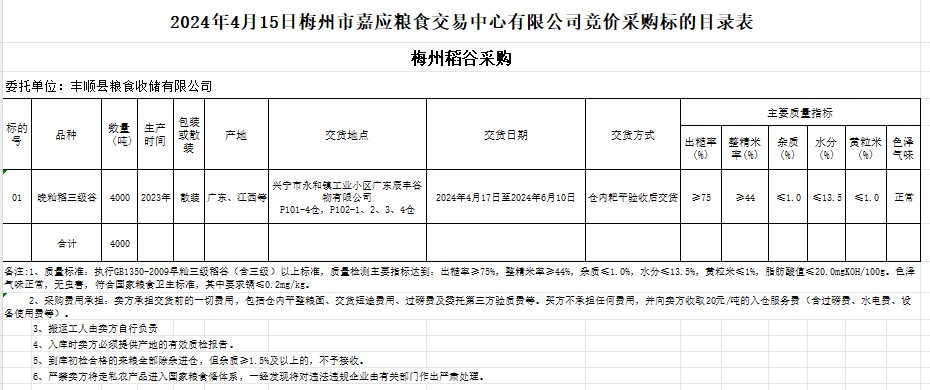 2024年4月15日豐順縣糧食收儲(chǔ)有限公司稻谷采購(gòu)
