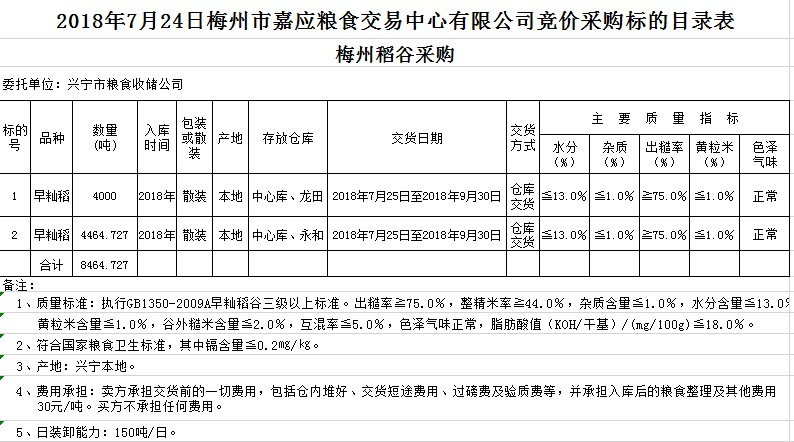 交易時間和地點:20187月24日(星期二)上午10。廣東省梅州市彬芳大道南161號梅州市糧食交易中心3樓。